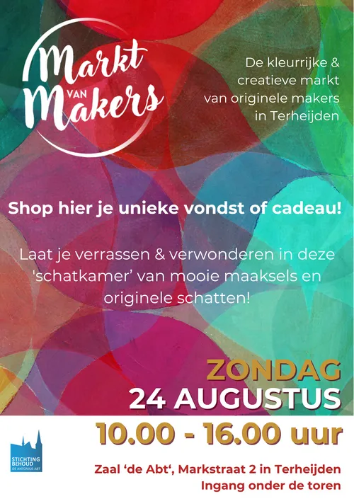 Terheijden - Op zondag 24 augustus verandert zaal De Abt aan de Marktstraat 2 opnieuw in een levendige ontmoetingsplek voor liefhebbers van ambacht, kunst en originele creaties. Tijdens de achtste editie van de Markt van Makers presenteren meer dan 27 makers uit de regio hun handgemaakte werk. De markt is gratis toegankelijk en geopend van 10.00 tot 16.00 uur.